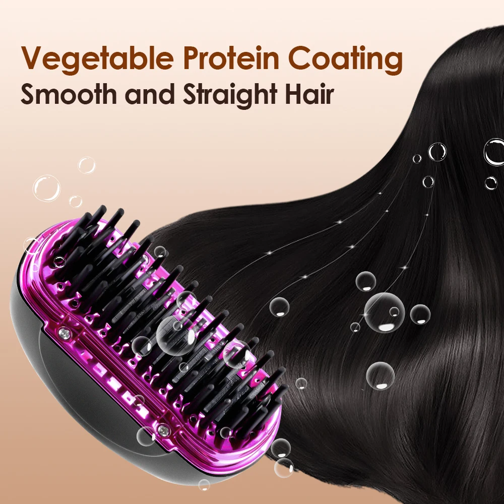 1. The portable mini straightening comb’s rounded teeth do not snag or tug on hair and offer multiple conditioning in one comb. It is a two-in-one hair straightener and conditioner. The vegetable protein coating leaves your hair silky smooth and straight.